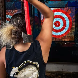 We really had a good time here, but that was more the result of my crew than the business. No pressing complaints, but I was surprised by how laissez-faire the staff was considering we were throwing real-ass weapons against a wall, having them bounce off, having them fly back at us - it was harrowing and totally unexpected, I thought we'd have had significantly more oversight. The staff were themselves throwing axes on a different alley, distracted by practicing their own throwing skills, and not paying us hardly any mind. Now, for candor, I have not been a patron to other, comparable businesses, so I am going against what FEELS like the way it should be and not what is precedent for the axe-throwing industry. But we were a bunch of buzzed adults hurling things that could absolutely murder/decapitate other humans, so I expected more babysitting, training, hovering, etc. I felt rather uneasy the entire time, so I won't likely be back to this business.