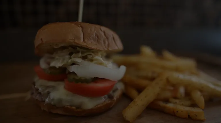 Big Easy Burger, chipotle pulled pork topped cheese burger.
