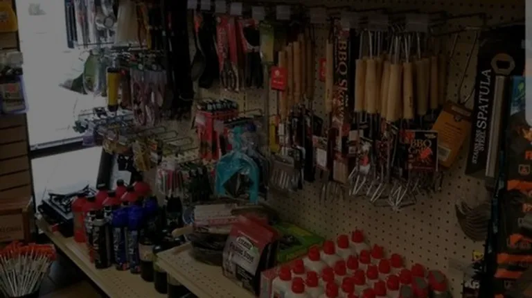 a wall of fishing supplies at the convenience store