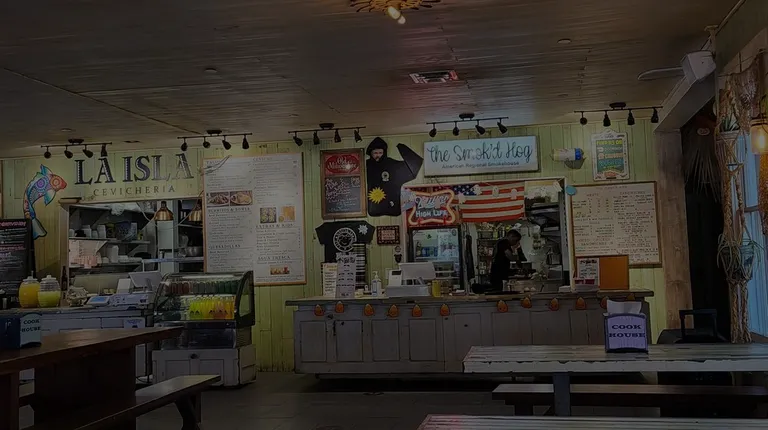 Stopped here on the way home from San Diego. What a cute little village smack in the middle of a shopping center. The smok'd hog shared the building with a few other businesses. The dining hall serviced all restaurants and had picnics tables to sit at. The brisket was tender and delicious. I had a side of corn bread. Very filling! Service was great and with a smile. Would stop here again!