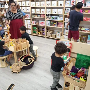 Things they love? Things even I love! This store is so cool! It reminds me of the toy stores in OC. I appreciate they quality of the toys they carry and how they most gear towards imaginative play. They even have the ABCs in braille thank you for selling things like this. It's so hard to find adaptive toys in person. I also love that they have a play area for kids to enjoy while parents shop. I can tell that you are really here to serve the community and you care about the littles. The woman who was there when I went was so kind and attentive. She did not hover over me (I was the only one in the store at the time) but she gave me my space to look around. Great quality toys, awesome service, and genuine care towards kids is what your shop radiates to me and I love it. I hope you stay open for a really long time. These are the stores I like to have available to visit and support.