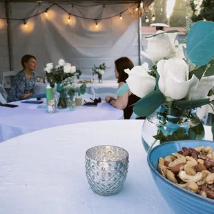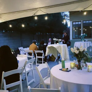 Our backyard wedding celebration with canopies and tables from A&H Party Rentals