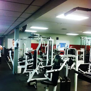 I've been a member here for about a dozen of years so I think it's finally time to Yelp review them. I'm torn. If I let the secret out about this gem of a gym then I risk it getting overcrowded but then again, maybe there's someone out there looking for a place as low-key as this. Full disclosure - this gym is old. The parking lot and the building have "seen things" if you know what I mean. There's no pool and the locker room spa has never worked since I've been here. Same can be said for the elevator. There's no bright paint on the walls and there's advertisements as old as I am I'm sure. That being said why 5 stars? Because this gym is a gym! The weights are all here, the equipment, treadmills, ellipticals, stairmaster etc etc. The people here? No showmanship, we mind our business, and we work out. There's all sorts of ages, weights, and fitness levels here and no one cares. They have a smattering of classes led by instructors throughout the week. There's karate and jujitsu for kids(separate but hosted here so how cool to workout while your kiddo is in class). During normal "work hours" you'll see a lot more of the senior 60+ crew and there also is a group of special needs individuals that show up. In the evenings I've seen racquetball going on and there's a small lounge area where people can watch the people playing. I can't stress enough how normal this place is, it's not rush rush get out of the way for others and it's just a good vide all around. This is a gym for the locals!