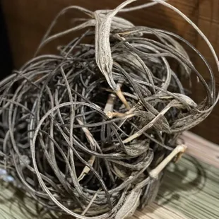 Beautiful basket weave, with touch of quail feathers.