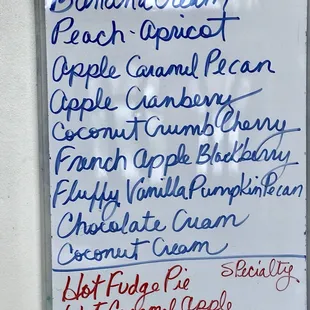 As you enter the restaurant, you'll be greeted by the selection of pies that are offered today.