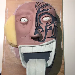 My daughter making a Cheshire Cat bank.