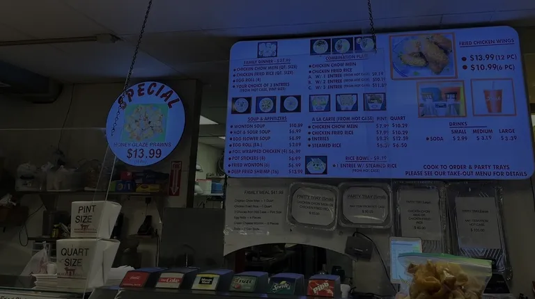 Pros: cheap, quickCons: everything else. This was almost unrecognizable "Chinese" food. We identified the fried rice and chow mein but they had almost no flavor. The pork tasted off, like it was spoiled. (We got BBQ pork which came in a sauce--not supposed to--and sweet and sour pork that managed to look grey and slimy.)I was supposed to get teriyaki chicken which looked like a stew and was chewy. The orange chicken was spicy and gummy. The broccoli beef was mostly broccoli but the beef was okay. The egg rolls were weird--dipped in a thick batter and fried. It seemed as if all of the food had been sitting for a long time. Sadly, it wasn't cheap because we ended up not eating it and throwing it away, which I hate to do. We were worried about eating it as it all tasted off, especially the pork. Bottom line: This was really bad and questionable food. Not worth it.