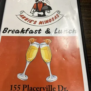 a menu for breakfast and lunch