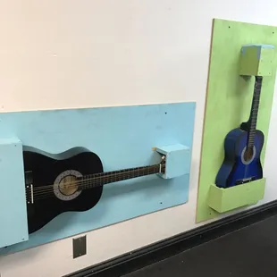 Downstairs music room has 3 guitars and a piano