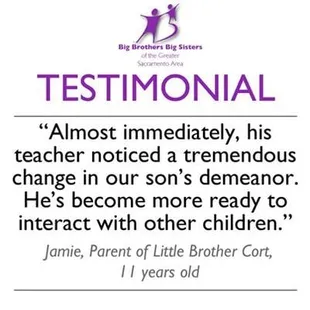 I have been volunteering with Big Brothers Big Sisters of the Greater Sacramento Area since the fall of 2020. I must say that it has been a wonderful experience. Dimitrius Stone, the Executive Director, is a great leader and you can tell he is extremely passionate about the mission of BBBS. All of the BBBS team members are professional, kind and also very passionate about the mission. It is an organization which works efficiently in order to make the most of each dollar that is donated. I would encourage anyone and everyone to volunteer and/or donate to this great organization. The team at BBBS works very hard to help at-risk youth in the Greater Sacramento Area. They want each child to have every opportunity to succeed, and that puts a smile on my face.