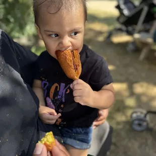 We are lucky to live fairly close to this cute pumpkin farm . We come here once a year for the festivities of October. This farm is pretty big they offer so many things for kids and families . The parking is free during the week and some Fridays you do have to pay $10 Saturdays and Sundays is $20 dollar parking . They also offer movie nights and have fireworks some days . They have a corn maze , train rides , carousel, coyote mountain mine , sunflower stroll , petting zoo , live music , play structures and so much more . For the rides you can get a wrist band or pay by tickets . They have a lot of options for food . We got corndogs and later on I got the best thing I have tried in a while Slushakies you have to try that ! It's a slushy cider it's so so good and refreshing. The bakery is very delicious too . Overall we had a great time here . The boys loved it we got a pumpkin also .