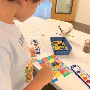 We were greeted very warmly by MaryTess on a First Saturday Drop In Day. I had registered online for our family of four a few weeks in advance and there was no cost, just recommended appreciated donation. I attended with my two boys ages five and eight. It so happened that my younger son was having a hard time controlling his body. He was mildly upset about something. The art was beautiful and spaces were well decorated but some of pedestals with expensive art pieces look v like they could very easily knocked over by my rambunctious little human, so I realized the event was not a good idea for him. My husband took my younger son to the nearby coffee shop.My eight year year old and I enjoyed the watercolor activity and the helpers leading the activity were extremely friendly and helpful, finding us comfortable seating and offering to refresh our water for our paints. It was a nice experience overall, but maybe not the best spot for unpredictable little humans.