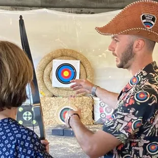 I signed my daughter up for her 1st archery lesson for her 20th birthday and so glad I did. David is a terrific instructor and he took the time to show her how to replace a few fletchings she was missing and then showed me how to adjust her compound bow because it was too heavy for her. We'll definitely be back and schedule more training sessions soon. It was a bit difficult to find using GPS so we ended up walking completely around Denio's. They're inside closest to the entrance by the Jimboy's corner.