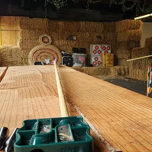 It would have been fun, but they crowded way too many people into a small space. (7 in our half of the place). 1 person working, 12 customers scheduled at the same time. There was next to NO instruction. No help when needed. Arrows in terrible condition. Some had no feathers. It's inside the flea market, so you will have to pay to get in.