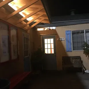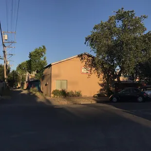 This is the stage complex, view from 25th street and R. Three Penny Theatre entrance is through the gate