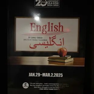 This was my first time visiting here. I didn't know what to expect. Greeted by friendly hosts. Surprised how tiny the theatre was but it was PERFECT! Loved being so close. Seats were comfortable. I cannot wait to go back! We saw English. Wonderful story. And great actors! Brilliant.