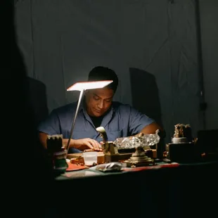 a man working on a cigar