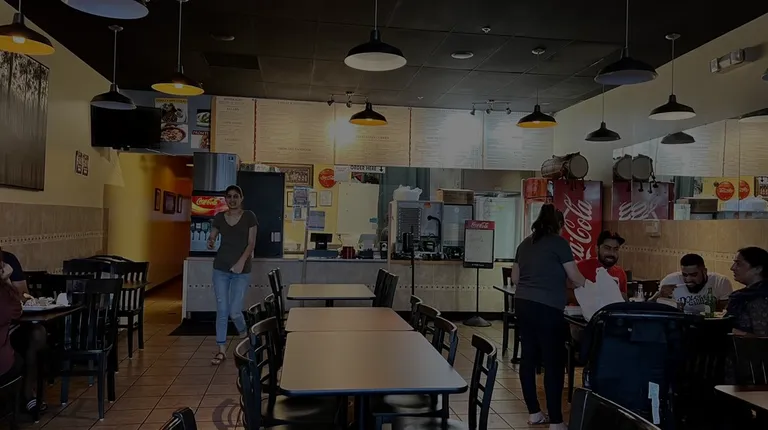 The food here is amazing. When I walked in I knew it was going to be good because the smells coming from the kitchen made me even more hungry. I've never sat down to eat. I always pick up my food. They get me in and out and the restaurant looks pretty clean.