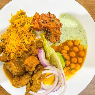 I really enjoyed my to-go meal from Chaat of India. I had the following items: Chana Masala, Butter Chicken, Garlic Naan, Veg. Biryani, Chole Bhature, Tandoori Chicken, and Dahi GolGappa. I ordered some items mild and some medium; none were overly spicy to me. I actually didn't have a dish I didn't like. Even the Tandoori Chicken, which I've found to often be overcooked at other places, was cooked perfectly here. Everything had good flavor and taste. I read they have a buffet, so I can't wait to return for that one day soon!