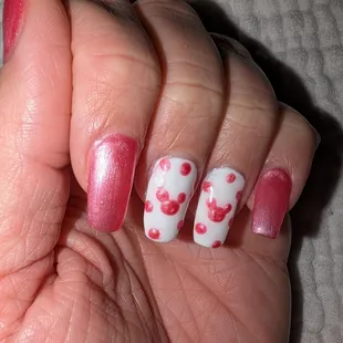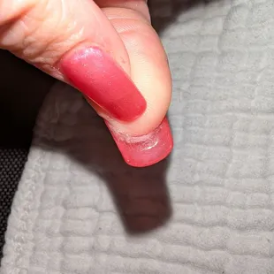 My sister and I made an appointment for 2 pedicures, a full acrylic set, and a full Gel X set. My nails took 3 hours and there was so much glue all over my cuticles and under my nails. She admitted to ordering the wrong glue. Even after pointing out areas, the lady left massive amounts of glue under my nails. She tried to cover up some of the pink polka dots with white. Which didn't blend in at all. While the pedicure felt amazing. There is gel polish all around my toenails. She did give me a 50% discount on my Gel X, but the lighting was so bad I couldn't see the extent until I got home. My sister's acrylics were bubbled and filed unevenly, and the gel polish over top was spotty.