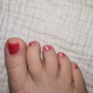 Called for a last minute appointment for a fill and gel color change on my toes. I am SUPER picky and made white I let the lady who answered know of this... She schedule me with Jenna. FYI - I'm the girl who looks for the best nails on yelp btw lol but I couldn't find any names here so this is why I am writing my review. Jenna was so sweet, and listened to everything I wanted as far as shape goes. She speaks English very well which is always helpful especially when you're particular. Everyone here was very kind. Music was super relaxing too. I'll be back for sure!