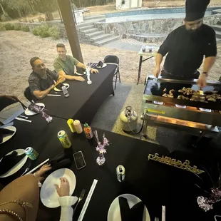 Where do I begin?! let me just start off with how great the service that was provided by Octavio and his wife. From the minute they walked in, to the very end. Very attentive and great performance for hibachi style dinner right from your home. With close and personal connections between the Cook himself, Octavio, and his wife who helps out with set and anything that is needed. The food was excellent, seasoned, fresh, and never ending. They have everything they need and came well prepared. Being able to have the luxury of having a hibachi style dinner at your home is something worth experiencing, especially with Chef Octavio. If you're thinking about hosting a party or gathering at your house, hibachi style with Octavio is the catering business you want to go with you will not be disappointed. Thank you!