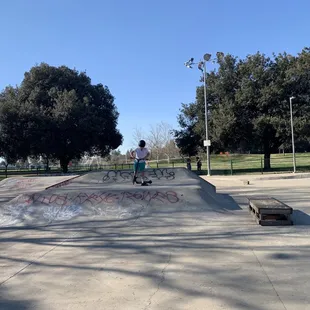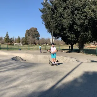 A nice big park built bordering the local high school. The main reason I've come here is because there's a nice little skate park that allows skaters and bikers alike to shred the gnar during the day.If you think you're manlier than a little kid, you should give it a try. I mean it, sometimes there are little kids hopping out of the bowl on bikes and stuff. I wear a helmet because I don't want to have to keep up my manly front from a hospital bed.There are other things here too, but I'm mostly reviewing the fact that I have a place not too far away to pick BMX back up. It can get a little crowded here so you're probably best off coming during the week around school hours.