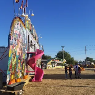 Cool awesome decor!! My first time here!! Not sure if it's because of covid that it was kept small?? Had about 2 rides, 1 long tall slide,2 game booths, and 2-3 food spots.. then scattered throughout was stacked hay.. and pumpkin for sale. Small.. but, worked out for my kid! Great For Young children and fair food cravers !!! Will come again if my kid isn't soo scared!! Lol