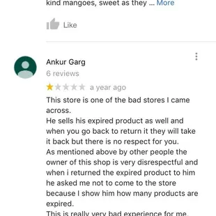 This store sells expired food products for several years despite customers mentioning it to the store owners. They do not remove it. Also they charge a higher price when they do the checkout. I do not know why the health inspection board hasn't intervened.