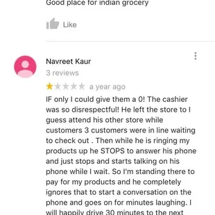 They have a very condensed store with a large variety of food. They offer many spices, snacks, frozen foods, sweets, vegetables, and more. But each time I come I realize I have to be careful to check the dates on items we buy. Many of the frozen foods are past their best buy dates, also spices are. And I also purchased some Dass Sweets from the refrigerated section, and when I took them home I found mold on them (very sad). Sadly it did not have a date on the box, so I didn't know. So as long as you shop carefully and read the dates on what you buy, you'll be fine. It is frustrating though to have to pick through items even more diligently than you should have to. As for service, everyone has been nice. I have lately seen mainly a lady at the front, and she was friendly.