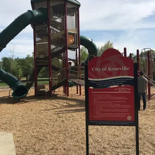 My son loves this park but the only problem is when he has to go to the bathroom we have to drive to the fountains and hope we make it. Other than that, he loves it here. One of his school friends had their birthday party at this park and that was fun. The only disappointment is the tallest slide has been broken for a while and blocked off and the last time we came the other slide was blocked off cause something else needed repair. Other than the broken slides and no bathrooms this park is nice. There's a basketball court and giant grass area. Hope the slides can be fixed soon! Cmon Roseville