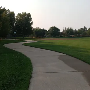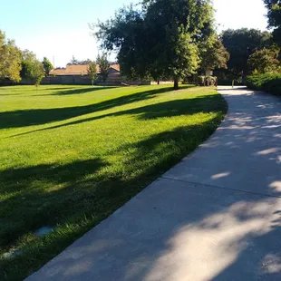 Love this park I go there at least five days a week to walk and jog if the weather permits. The city maintains the park and keeps it nice and clean. I wish there was a public restroom but there's none. People who Walk their dogs are careful and responsible.