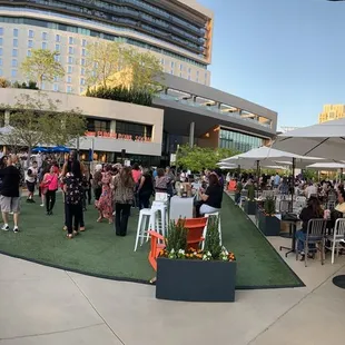 Today was our first time experiencing DOCO Al Fresco. We came on Halloween to see the light show and enjoy some good food.Pro: The show was super fun with great music! There was plenty of seating and very spread out for us, which we really liked. It felt more personal and private. They had a little spot for rocking chairs and fake grass where our little guy ran around. Before the show, the guitarist sang to our hearts. Con: Our food from Yard House took 40 minutes. We wish we had better text updates about how long our food would take. It wasn't busy at Al Fresco, but wasn't sure how busy it was at Yard House. We had to pay an arm for water instead of them providing water. We also got a code for free parking. It didn't work, so I emailed them and they sent another code, but that didn't work either. Luckily parking wasn't too expensive.All in all we enjoyed our experience. Not sure if we would come back for food. We would probably eat at the restaurant and then come by for any shows.