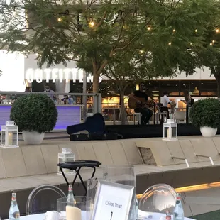 The ambiance is great for outdoor dining and getting the "Sacramento" experience. The musician was okay. He sang great songs but in a "Jack Johnson" toon. It was a little strange but it was great background music. I enjoyed having options from multiple restaurants. My only hesitation was that it was a very limited menu which is understandable because of the large area being accommodated. Being in a party of 6, the food took a very long time to get to us. We ordered our food around 9pm and didn't get it until around 10:15pm. The music had ended by then so we felt a little rushed to get out of there. The drinks were surprisingly good! Their main vodka is Tahoe Blue so be prepared for Tahoe blue centered drinks. They were very tasty though.