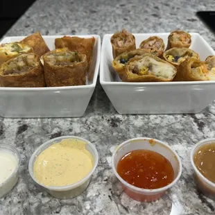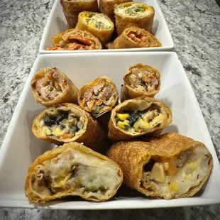 Excellent Egg Rolls. We got the pizza, cheeseburger, California, and sheperd's pie egg rolls. Sheperds pie was our favorite, followed by the burger and California Egg rolls. They were much bigger than I thought they would be. So We had plenty of leftovers. And they re-heat well in the air fryer at home. The family is so nice too. Will definitely return and order these again. Would be a good potluck item to take to a party too.Next time we will try the basic eggs rolls for something more traditional.
