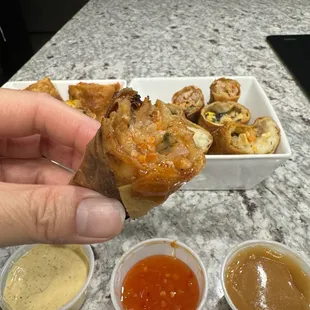 It was delicious and they are pretty filling. Love the different types of egg rolls. Went twice in a week and will be going back for more.