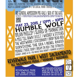 What a joke. The whole West Sac. river-walk path was fenced off, with security guards. No access to food trucks or booths unless you bought a ticket for the whole day. On the other hand, on the Old Town Sac side, plenty of free access to food, vender booths, and numerous FREE music performances in different areas. Everything was free access except for bigger stage areas which did require tickets (understandably). If West Sac wants bigger crowds, (didn't look like a lot of people were down there), they need to re-think this "festival".