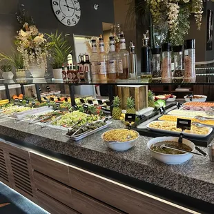 Looked up gluten-free places on GF app and this place popped up in my neighborhood. Of course, I checked out the reviews on Yelp and decided to check it out for myself. This place just opened for lunch for the day at 1100 on a quiet Saturday morning, so my son and I were the first ones there. Emma, the hostess/waitress greeting us as we entered in and knowledgeably answered my questions for gluten free options. The restaurant is CLEAN and nicely decorated. They have spacious dining area (in and out door seating areas), salad bar with exquisite selection of meat and cheese, and a full bar area with large selection of red and white wines. Ambiance is chill and casual - nice spot for date night ! We ordered side cheese bread (gluten free!), two combo meat lunch combo (upgraded top sirloin/pork ribs) and chicken salad to go. Be sure to ask Emma for the upgraded top sirloin option, which is not on the menu. The chicken was surprisingly so moist, juicy and full of flavor! I got to taste the pork and sirloin which were both cooked-to-perfection. Nice portions and esthetically arranged to go made it more eye pleasing to eat !! Can't wait to come try in-dining next time !