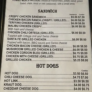the menu for the restaurant