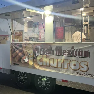 Fresh Mexican Churros as advertised my girlfriend and i always get the stuffed churros cream (custard) and caramel and it's always made to order and we pay after he makes it. easy access off the road and you can sit in the parking lot to eat it FRESH