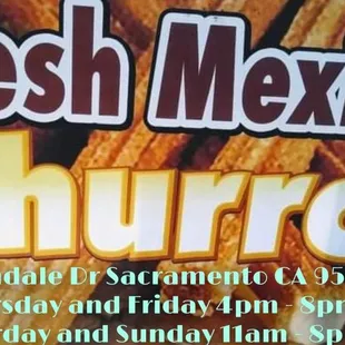 These are the best churros in Sacramento! They are super sweet and make everything fresh to order. I still remember ordering their tacos in front of La Taqueria Favorita down the street and now they have their mobile unit. Their churros are super crispy with the perfect amount of filling. I do have to admit their location is quite sketchy but it's normal being in South Sac and worth every penny!