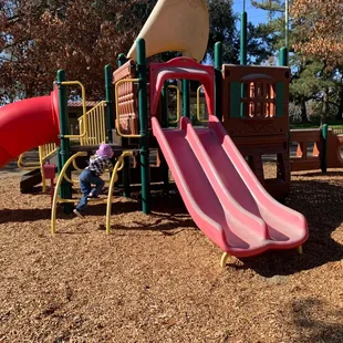 Great park!! I drive by all the time but never had the opportunity to visit. Took my toddler for the first time and love that that have a tiny tots area for little ones. Any playground that is also surrounded by large grassy areas are a hit for us.