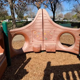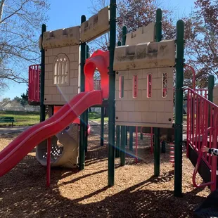 Driving along La Rivera Drive we happen to come across this park with 2 very cool at structures. Parking is mostly on the street. The first structure was a pirate ship and the second on was a castle. Both offer multiple slide & climbing types for younger and older kids. My granddaughter had a blast climbing, sliding and running around all the different options around the play area. On the castle structure the tall spiral slide is blocked off as the bottom of the slide is broken. But There are two other slides available on the castle structure. The park was clean not too much debris like trash. Playground is alittle faded but what do you expect being in the sun. The park offers 2 infant swings and 4 regular swings. They also have a small merry-go around, I have not seen one of these for years. My granddaughter didn't go on it this time as she is alittle small and a few other young girls was playing in it. Maybe next time. The park has multiple baseball fields, tennis courts, and a large & small dog park. The do have a bathroom (that is closed at this time), a few picnic tables and BBQ's. My granddaughter approved of this park and said she can't wait to come back again. Maybe next time we will bring a picnic lunch. We wore our face masks, sanitized our hands often and social distance from the others in the park. As the other people were not wearing masks.