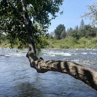 I love the quote "time is like a river, you never touch the same water twice". This is yet another spot on the American river I visited for the first time on land.We were in the area and wanted to picnic on the water. The parking lot is large and there are baseball fields and other park stuff but if you venture down the rocky somewhat steep hill there are little areas on the shoreline.We spent the entire day listening to the water and swimming and stacking rocks. We watched all the rafters go by but they couldn't see us. I saw 3 people go down the rapids on paddle boards standing!! That was impressive! I was absolutely content watching them from the shore in the shade eating my lunch with my legs in the water.. great day!