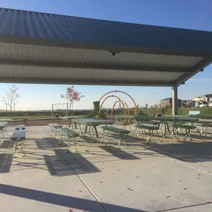 Nice park with great covered seating area. The monster slides were cool even for our little one. We played for a LONG time. Good for little and bigs.