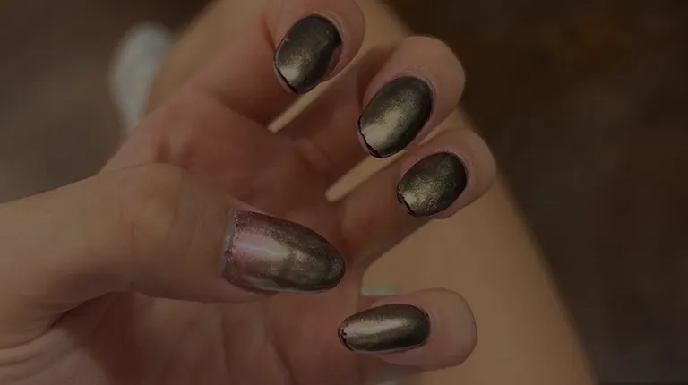Filled down thumb weirdly, almond shape.