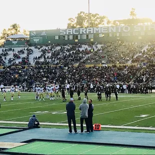 Hornet Stadium is improving, but still has a ways to go.Pro's:- The playing surface is brand new and looks sharp. Compared to years past there's a big difference, it's no longer a beat-down grassy field.- The school is very receptive to tailgating. While the fan base is OK, those that go to games regularly also tend to tailgate. I think some people have more fun at the tailgate parties than the game! However I would suggest you plan on tailgating; if you don't you will feel like you missed out.- The stadium surroundings (and fan base) seem to improve every year. - Weather is usually conducive to games in fall- When they play rival UC Davis, the fan atmosphere is incredible. Cons:- Fan base are mostly die-hards. Honestly I don't understand it, because it's always a good time. I go to a couple games a year and when I take a friend, they usually want to come back. - Bleacher seats around the stadium. Makes for bleacher butt, nobody wants that! There are some chairbacks but only in one section.- The "erector set" seating makes for an unappealing stadium. It doesn't give the appearance that anything is permanent. The cheesecloth around the erector set is not fooling anyone.- The bathrooms are temporary trailers that are long overdue for permanent replacement.The stadium gets better very year. If I were King for a day, I'd work on bathrooms, a permanent facade, and more chairbacks, in that order.