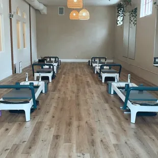 Group class in Reformer Studio