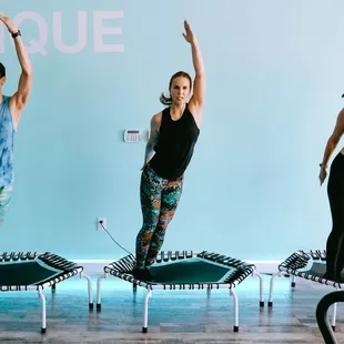 Our low-impact, athletic rebounder class blends cardio, strength, endurance, balance and lymphatic drainage all in a single bounce!