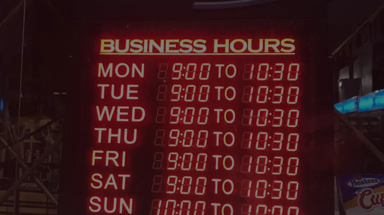 a liquor store with neon signs